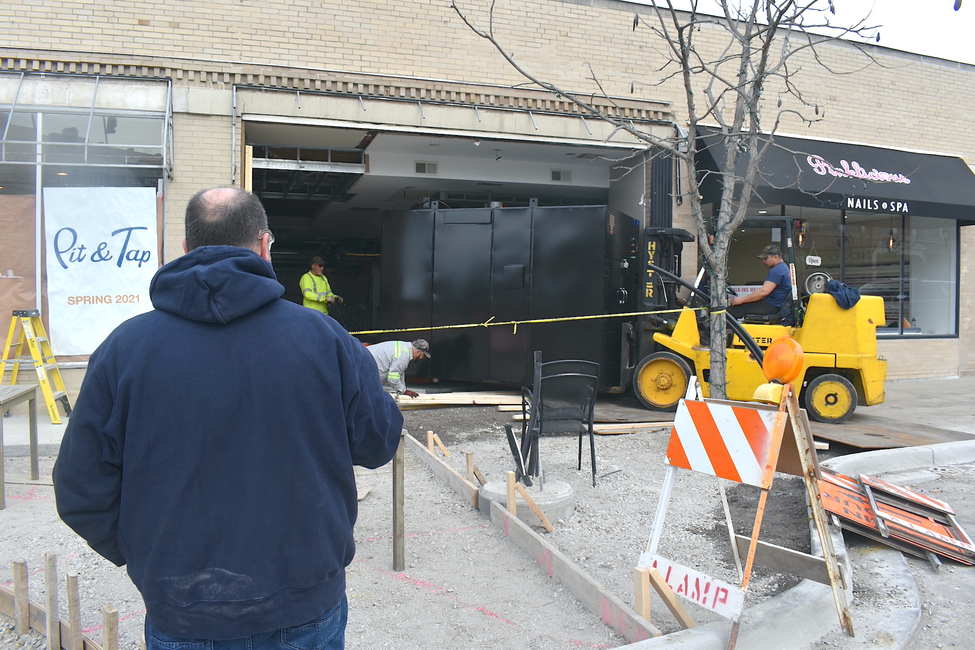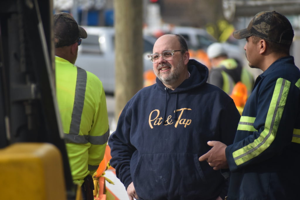 Just two weeks prior to Big Earl’s arrival, Pit & Tap needed space to install a large steel beam for the project.
