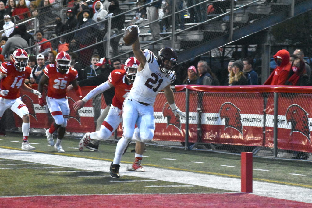 The most menacing of those weapons was agile and resourceful junior quarterback Dontrell Jackson Jr., who completed 18 of 31 passes for 285 yards and rushed 10 times for 43 yards. He passed for the Red Hawks’ first TD and ran for their second.