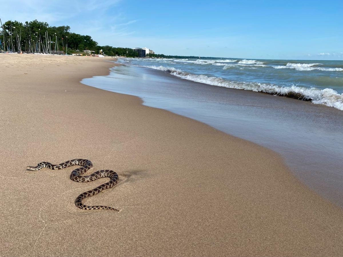 Wilmette’s Suzanne Martin was walking the beach when came across the snake the morning of July 9.