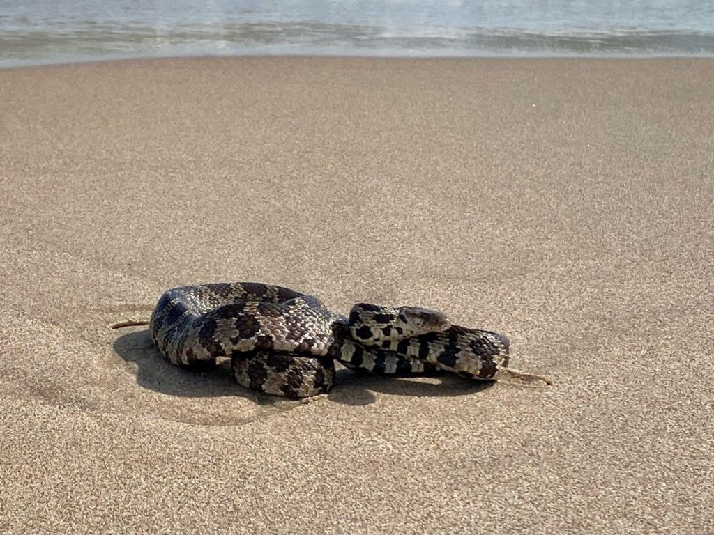Snake By The Lake: Fox snake enjoys morning sun to the surprise of beachgoers