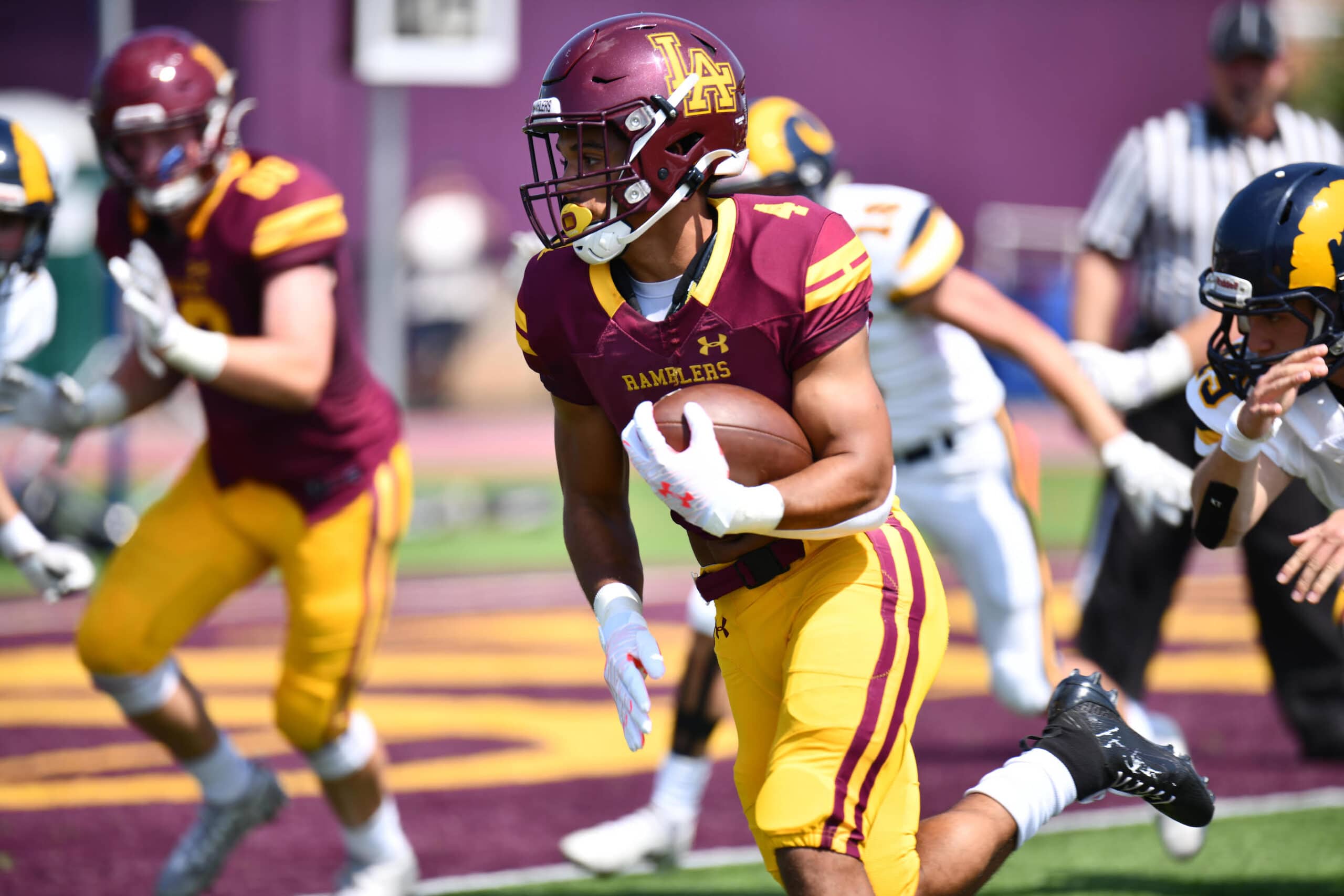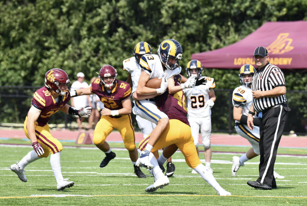 Picking up where they left off at the conclusion of their unprecedented and undefeated spring season, the Loyola Academy Ramblers began their normal fall season on Saturday, Aug. 28, at Hoerster Field by routing Milwaukee’s Marquette High 42-14.