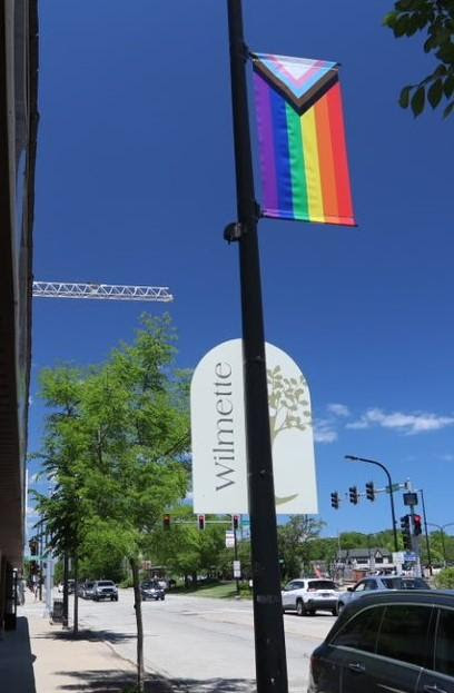 This year, for the first time, the village installed Progress Pride flags on lampposts along the Green Bay Road corridor and in the Linden Square business district, inspiring Falkowski and other community leaders to show their support for the LGBTQ+ community.