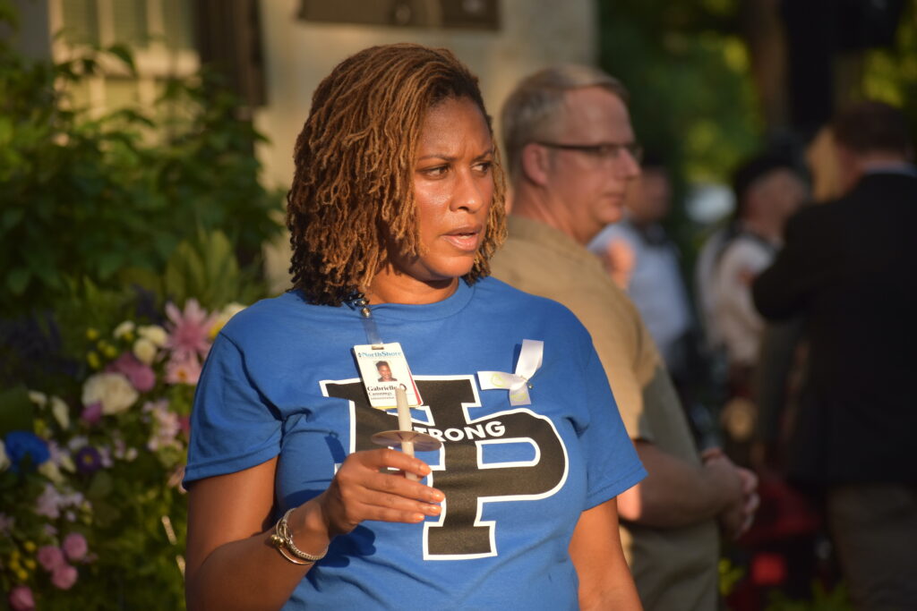 Serotta led the evening’s speakers after the playing of “Amazing Grace” by a local ceremony band featuring bagpipes and drums. He was followed by Mayor Nancy Rotering and Rev. Quincy Worthington, of Highland Park Presbyterian Church.