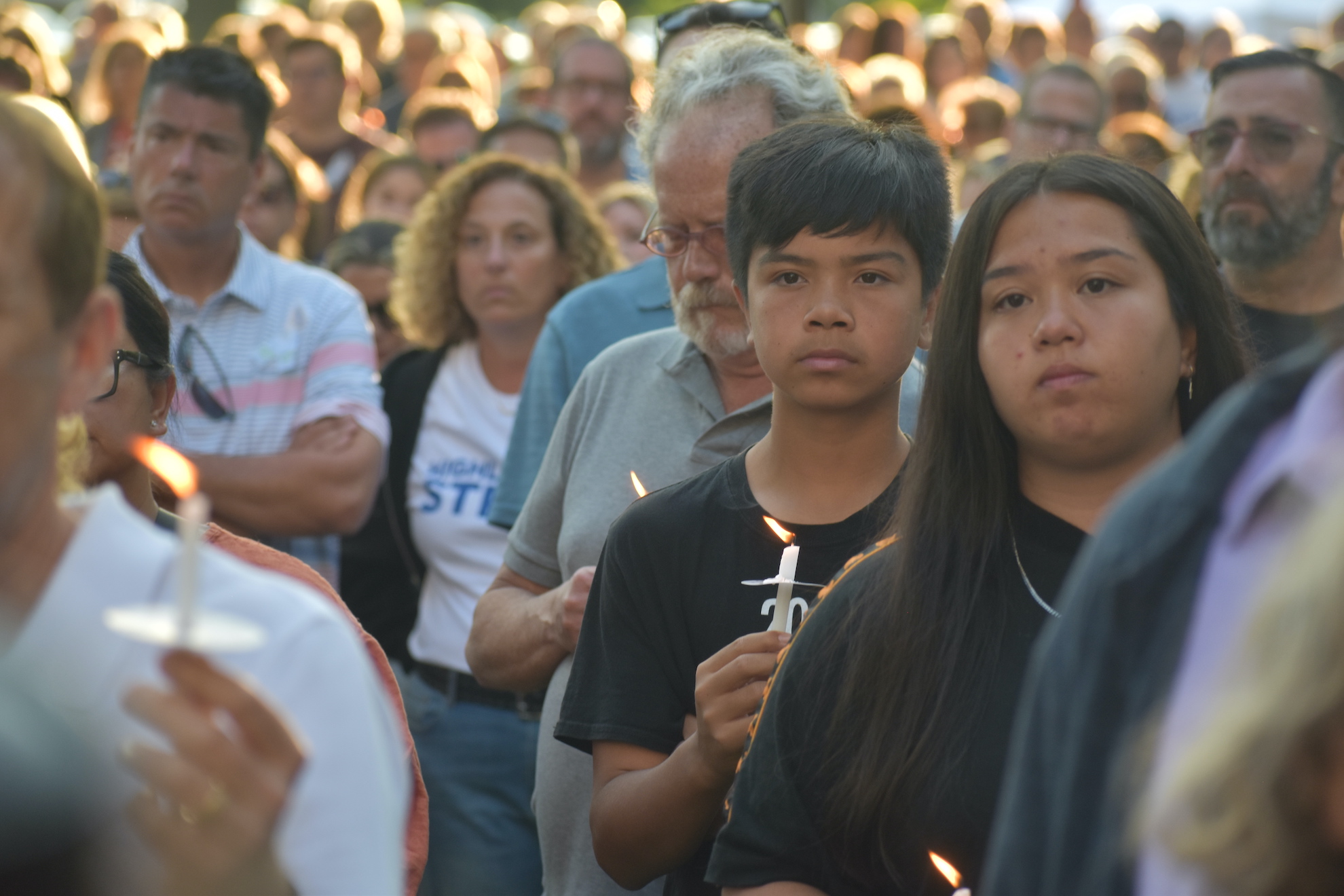 Prior to Worthington stepping to the lectern, it candles spread throughout the hundreds gathered on the City Hall lawn to honor the victims and represent the local connection.