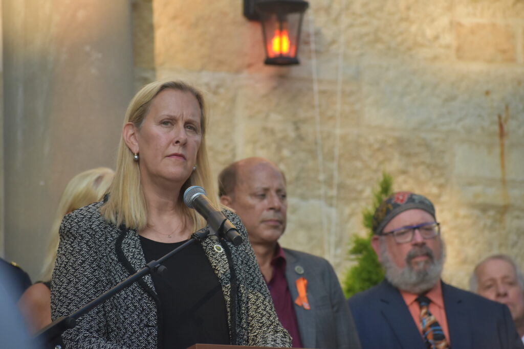 She also asked residents to honor the victims by taking action, “whatever that means to you and yours.” To Rotering, that means pushing for gun legislation.
