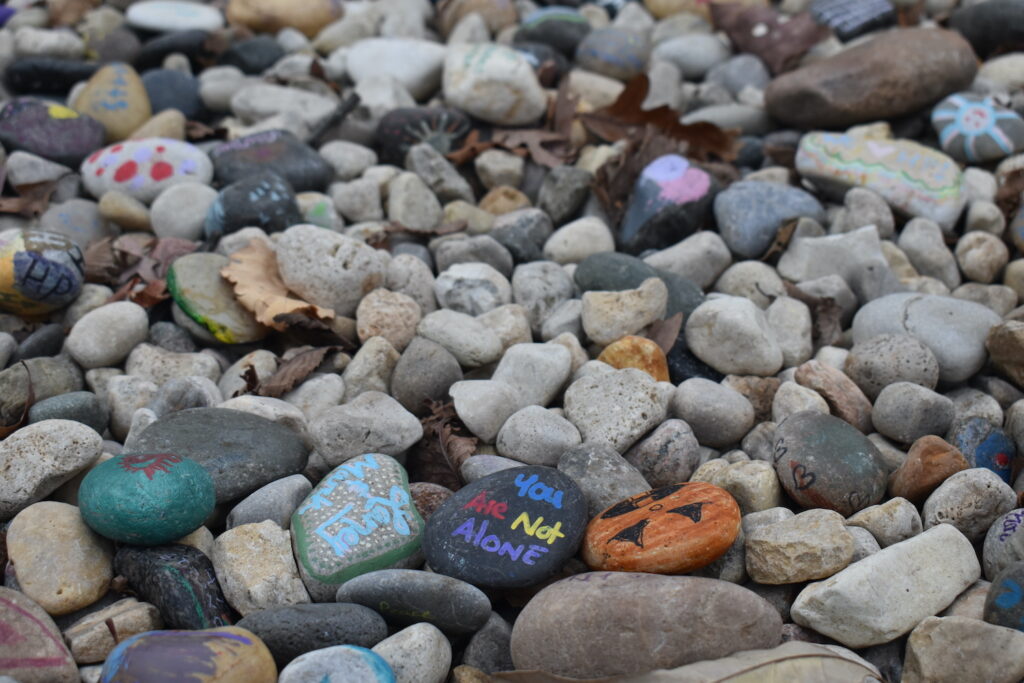 Accompanying the memorial is the Kindness Rock Garden, a project from Gratitude Generation, or g2 out of Deerfield, in which community members can paint messages and images on rocks. “Stay Strong,” “We’re In This Together,” and “HP Strong” are just some of the messages scattered among the stones.