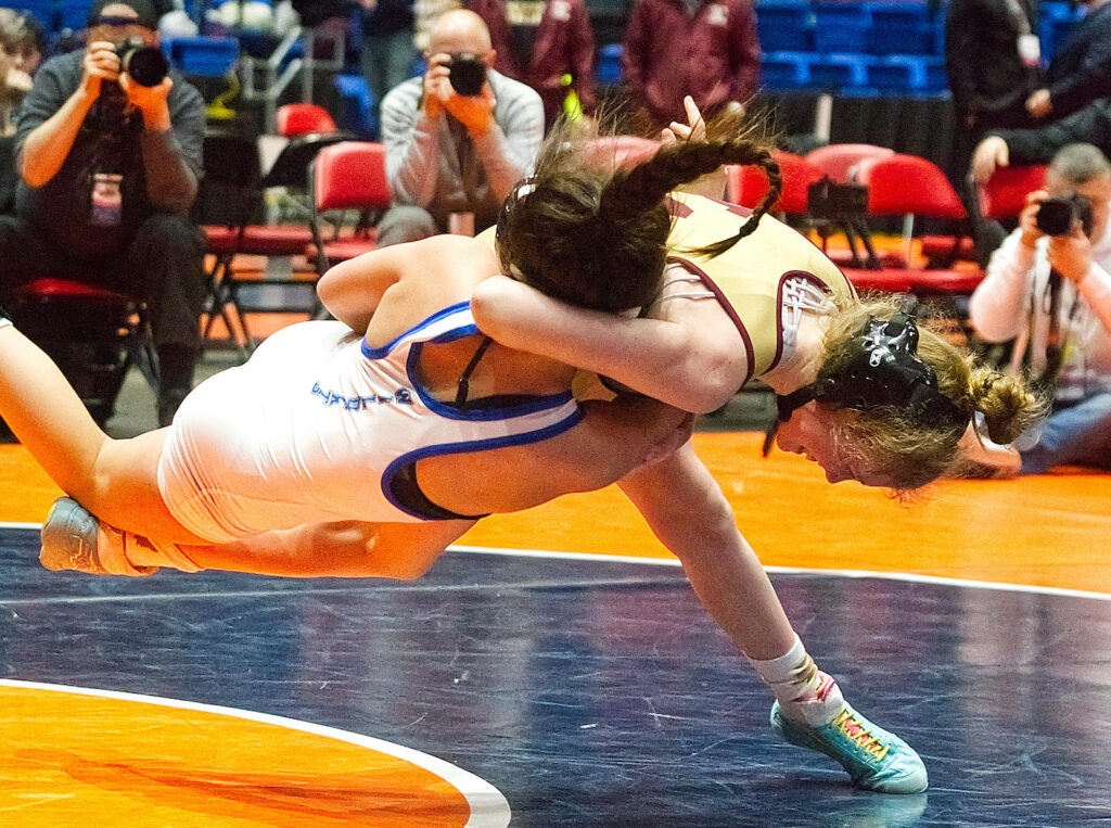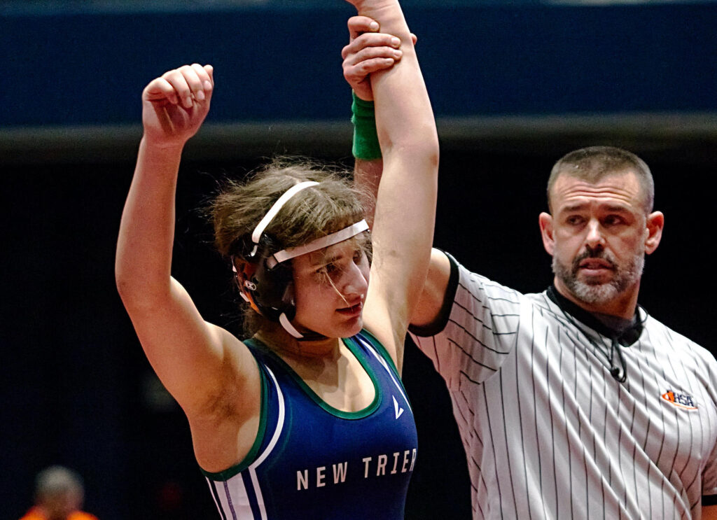 New Trier and Highland Park high schools also had representation at the girls state finals. Trevians sophomore Jillian Giller (25-11) wrestled at 140 pounds and bested her first opponent with a first-period pin before dropping her second match in overtime and her wrestleback by minor decision, 14-12.