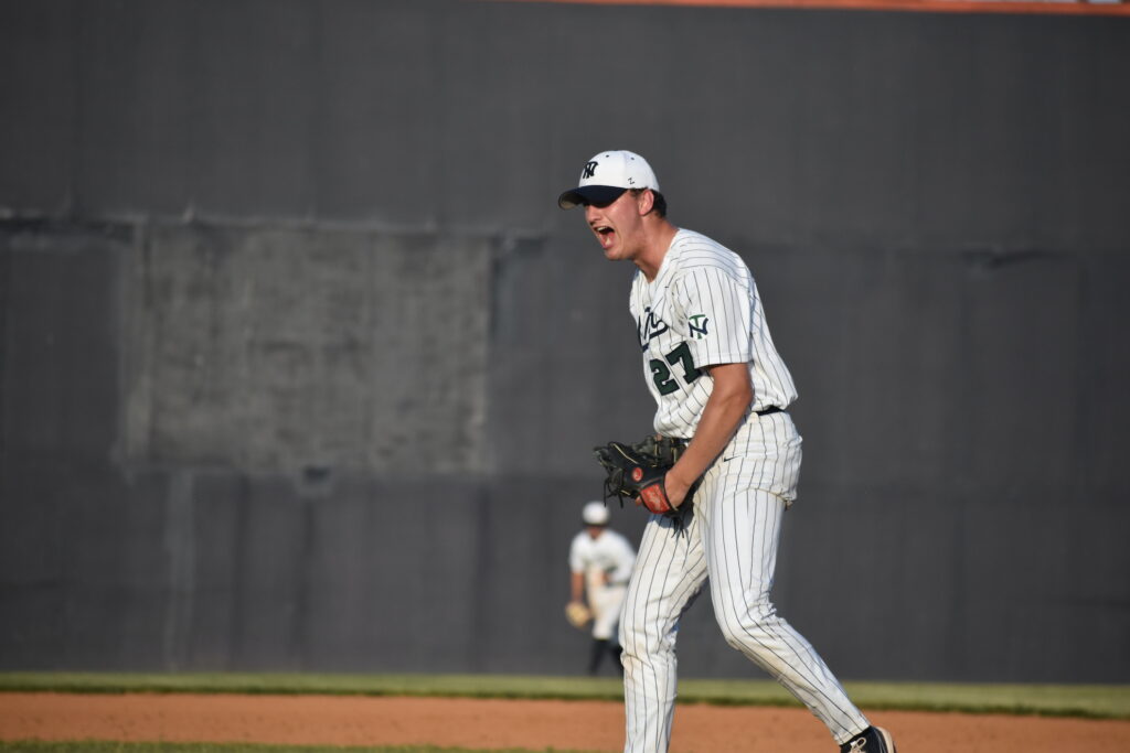 Aidan Nolan started the rally with a base hit. Three batters later with the bases loaded, Mayer smoked a single to left to bring in a pair. Stressler (3-for-5, 2 2Bs, HR, 5 RBI) followed with a double to bring in two more, and with two outs, James Novakovic (2 RBI) looped a double down the left-field line to score Stressler for the game-tying run.
