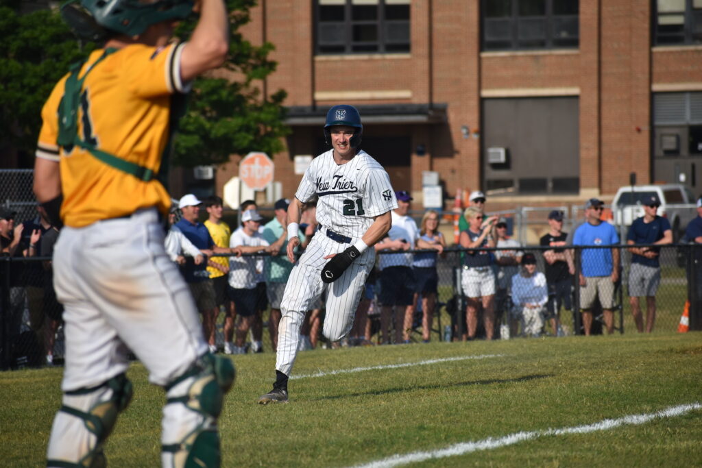 As he rounded the bases, the celebration was on for a 9-6 Trevians’, extra-inning victory over Glenbrook North in a sectional semifinal on Thursday, June 1, at Evanston High School.