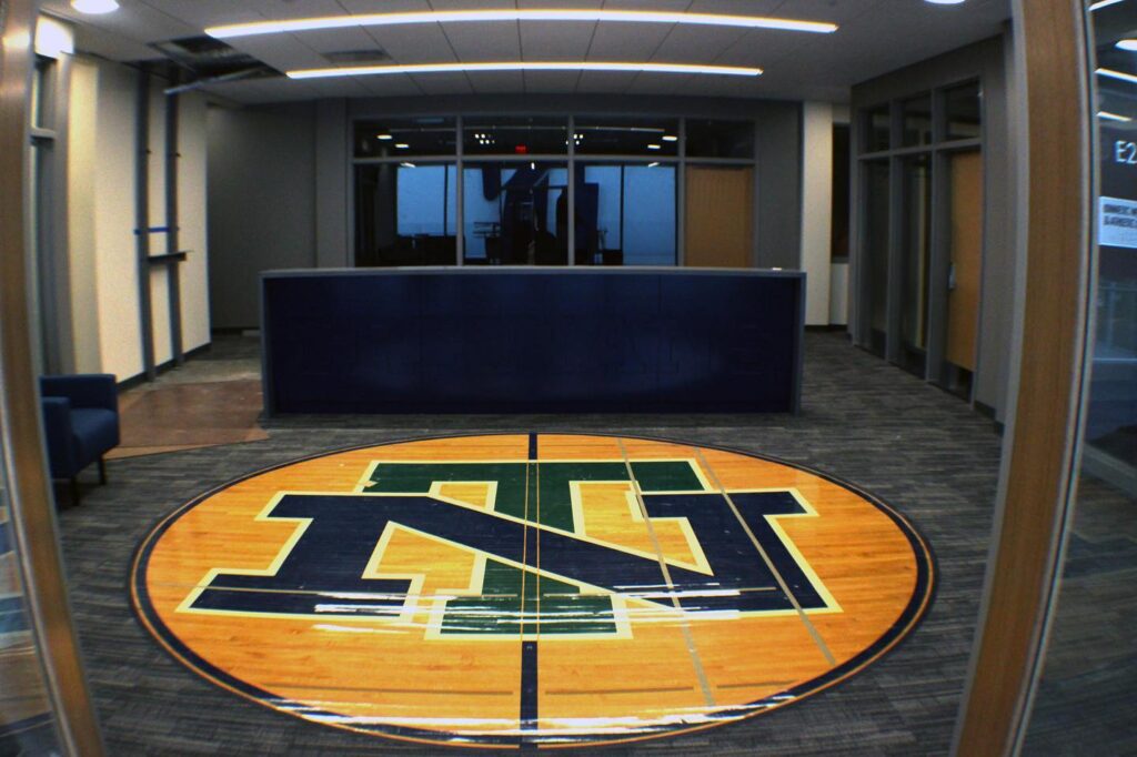 Climb the stairs and reach the first floor, which includes the primary entryway on the north end of the building, trophy cases and views of the lower-level track as well as seamless access to the rest of the school — a stark difference from its confusing predecessor.