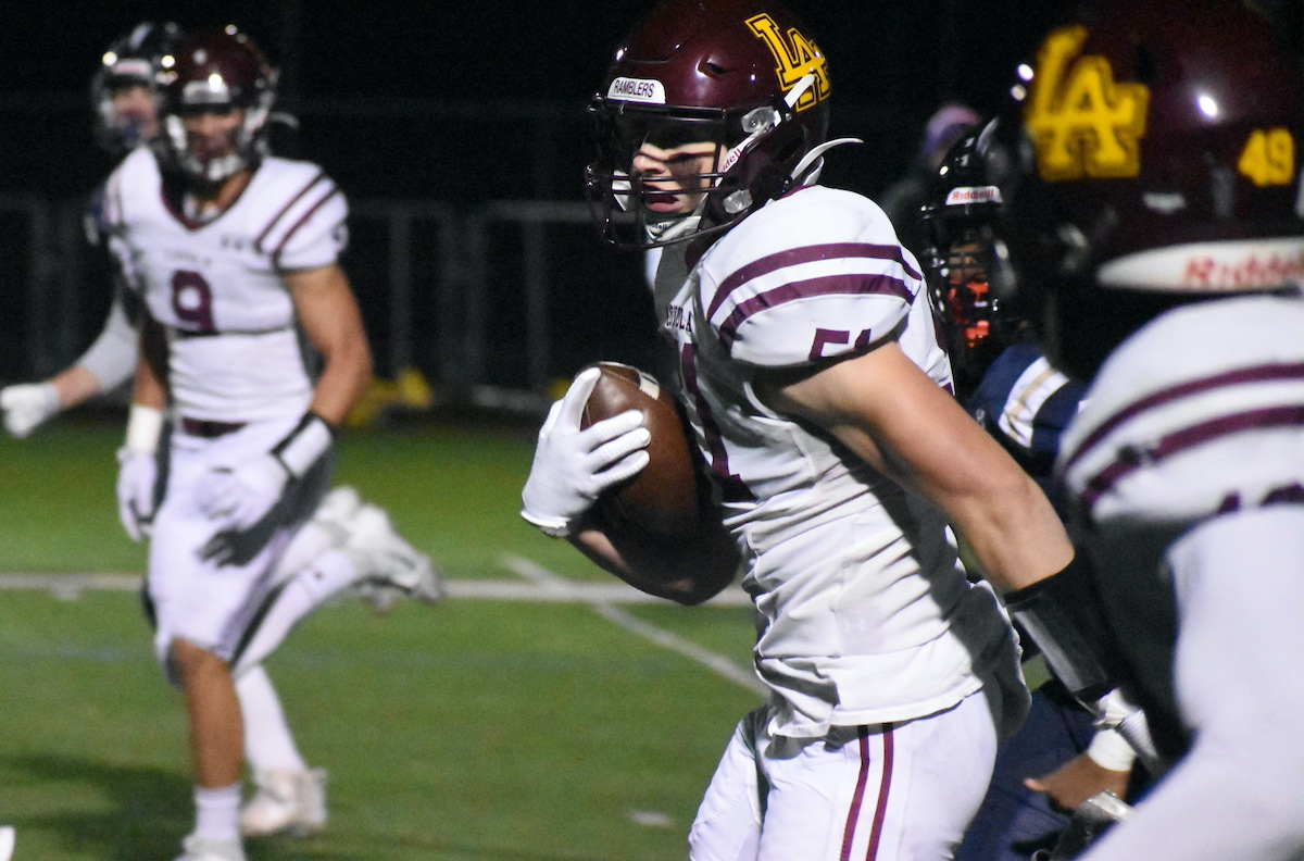 Four plays later the Ramblers had their second touchdown: Ryan Fitzgerald completed a 19-yard pass to Brendan Loftus, Drew MacPherson ran for 28 yards, Fitzgerald connected with Will Carson on a 12-yard pass and then the quarterback ran 13 yards to the end zone.