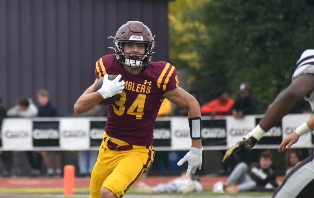 Six seconds into the fourth quarter Elliott’s 28-yard pass to Densmore followed by Elliott’s run for a two-point conversion slashed the Ramblers’ lead to 23-15 and set the stage for their game-saving defensive stand in the closing minutes.