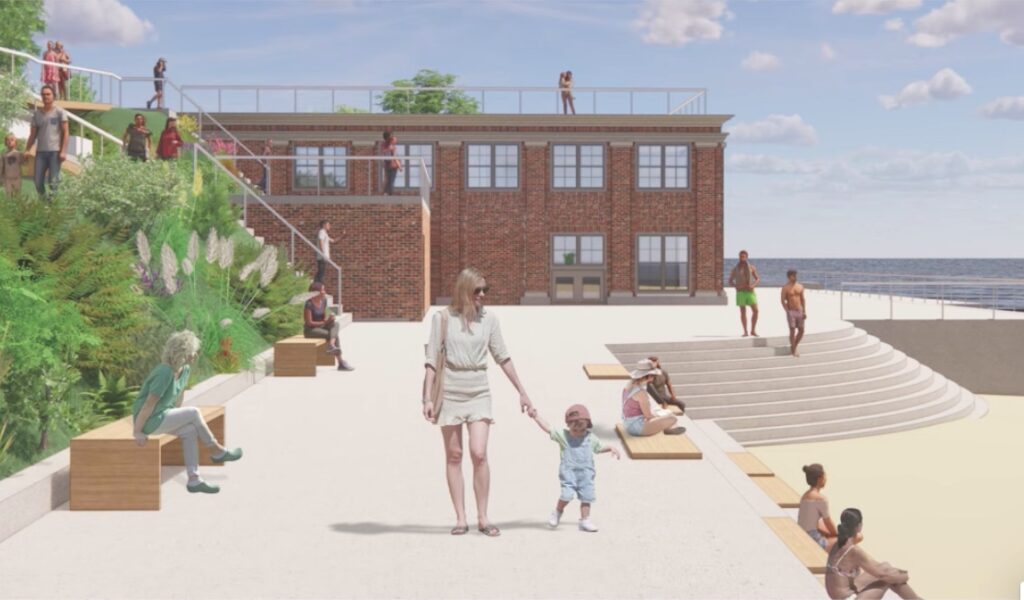 • The moderate plan could cost about $3.3 million and would place new staff facilities and restroom facilities closer to the beach. A new access ramp would make it easier to reach the beach, and landscaping could “soften” the beach facility’s overall look, Tinucci said. The rest of the building would still be decommissioned, he said, but would still cost the village for necessary maintenance. This scope could still be paid with village funds, but much of what might be done under this scope might end up being wasted, if the village decides in the future to go with a more ambitious plan.