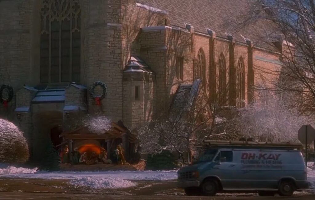 In the film, Kevin Mccallister (the child left home alone played by Makauley Culkin,) uses the church’s nativity as a hiding spot to escape the “wet bandits” (Daniel Stern, Joe Pesci), burglars trying to break into Kevin’s home. Later in the film, Kevin approaches the church for a respite, leading to a pivotal conversation with Old Man Marley (Roberts Blossom) — the conversation inside the church was filmed at a separate location, Grace Episcopal Church, 924 Lake St., in Oak Park.