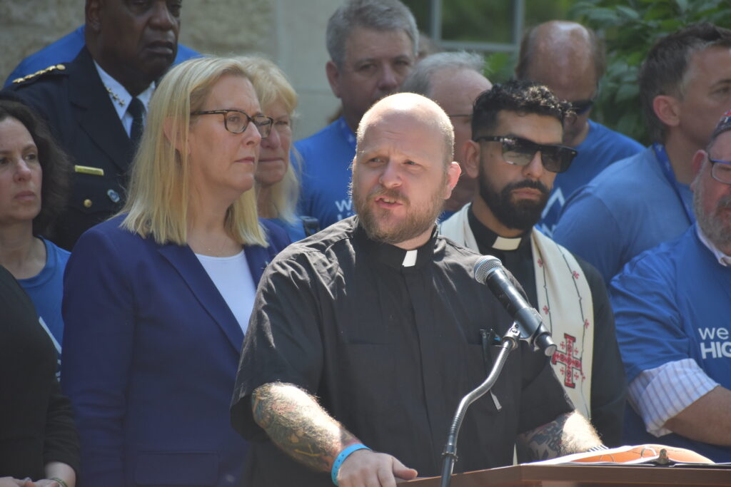 Quincy Worthington, of Highland Park Presbyterian Church, speaks during the remembrance ceremony in 2023.