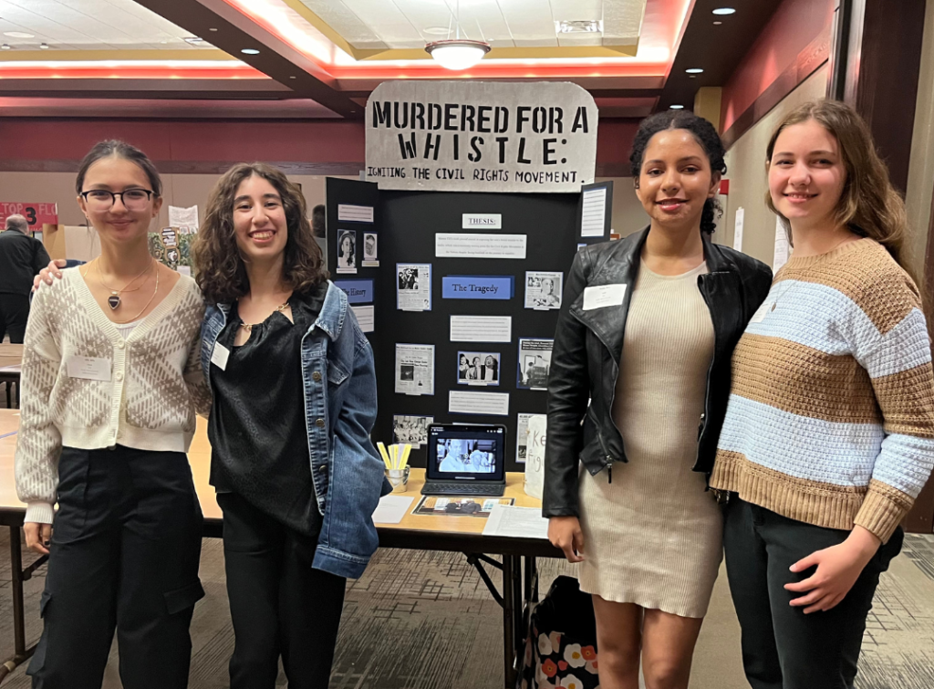 Sophomores Cora Frieswyk, Sofia Ujiki, Mara Swabb, Joy Marie Giyo and Marijana Tomasicyk qualified for the national event with their exhibit on the murder of Emmett Till.