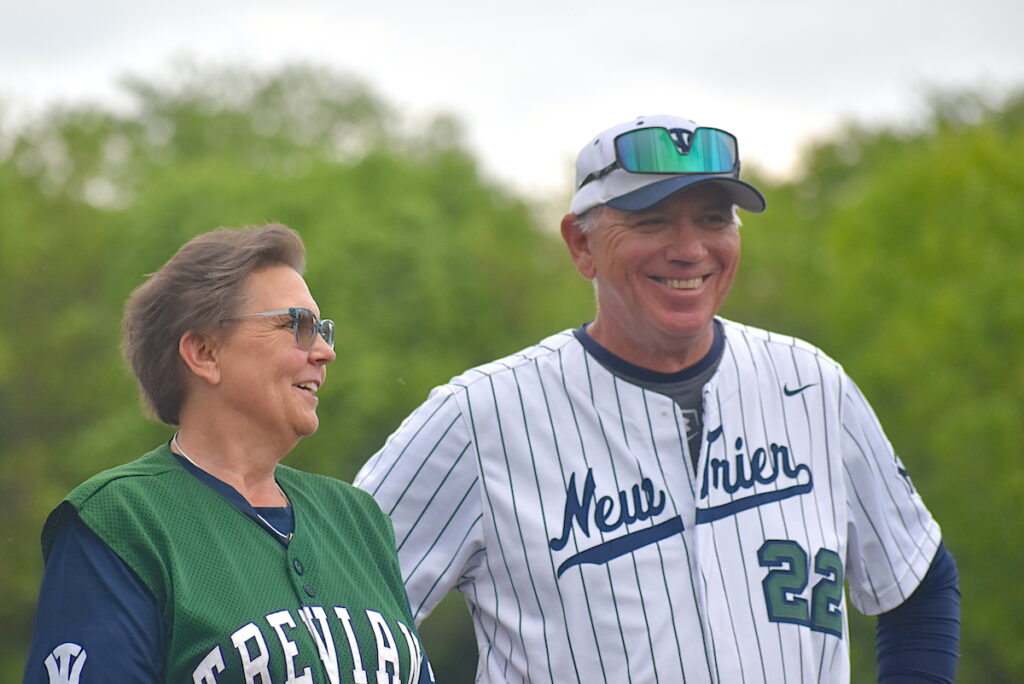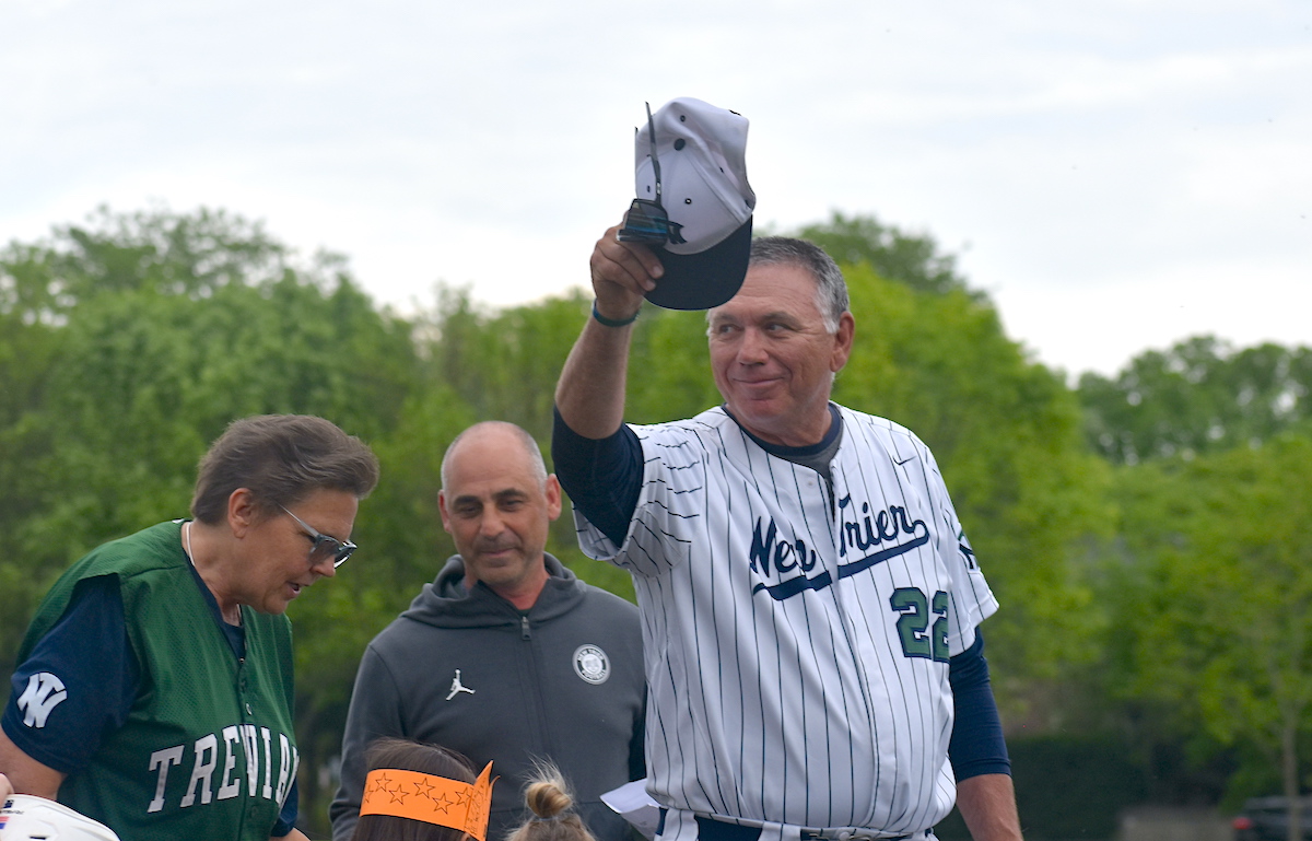 New Trier High School hosted pre- and postgame ceremonies to honor Napoleon at Duke Childs Field in Winnetka. Prior to the Trevians matchup with Mundelein, a 5-4 victory, the team’s 27th in a row, New Trier Athletic Director Augie Fontanetta praised Napoleon, who was joined by his family and friends on the diamond.