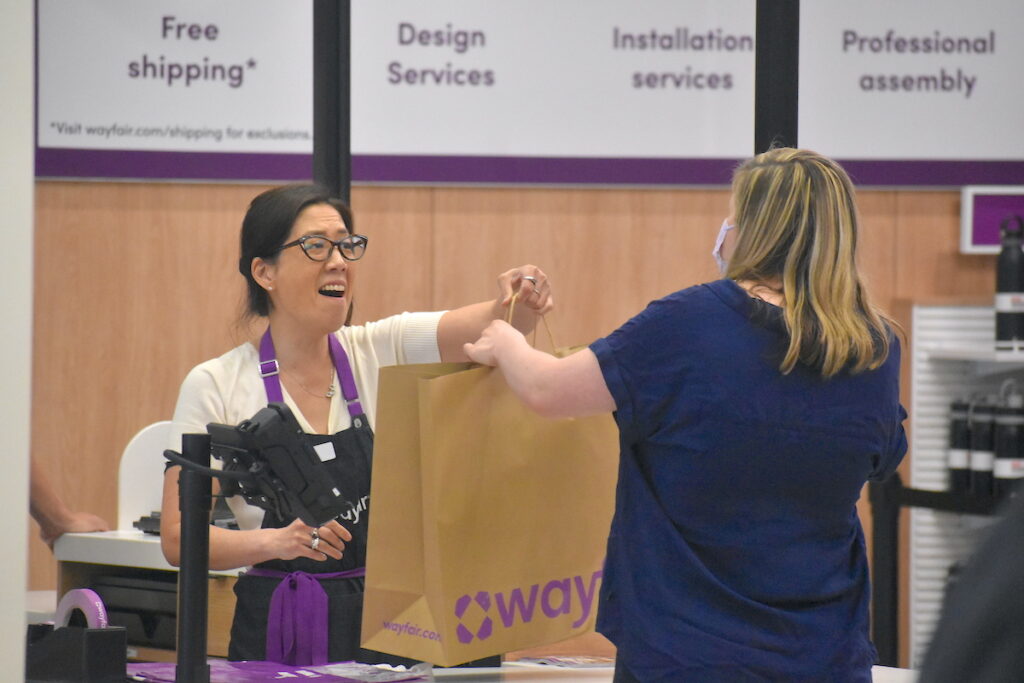 Kaufman had never shopped in Wayfair’s online store prior to Thursday but was looking forward to browsing, searching for a lounge chair and getting to shop in person.