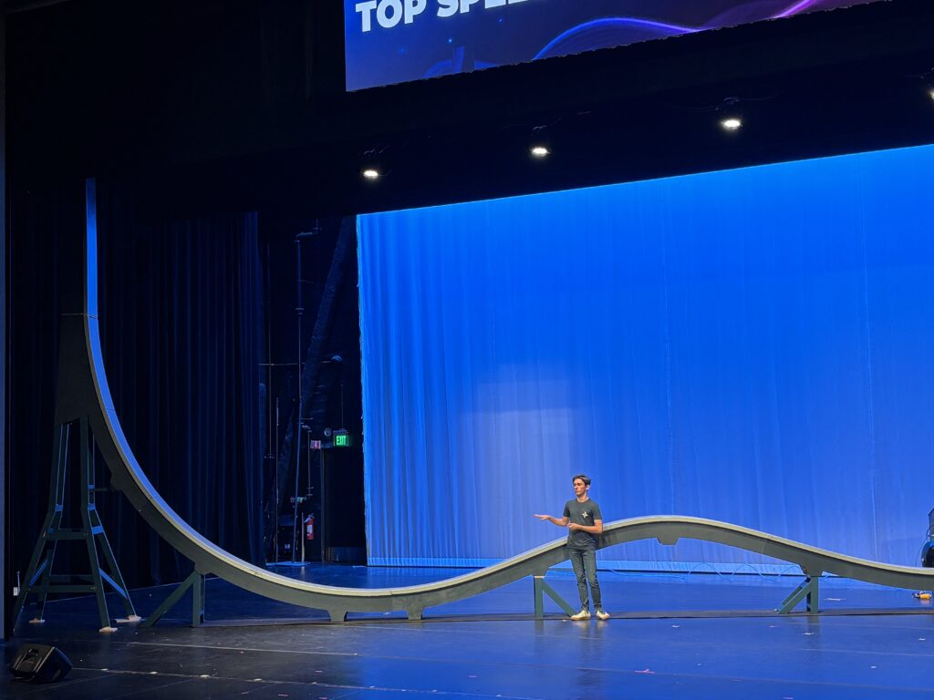 Parker Lofstrom-Austin, who just graduated in May, and his fully functional roller coaster, Polaris, took to Loyola’s McGrath Family Performing Arts Center on May 13. Lofstrom-Austin presented his coaster to provide fellow physics and engineering students with insight into his complex process behind its construction.