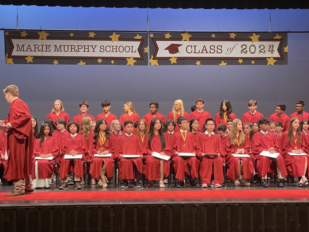 The ceremony included a speech from Alexis Kaplan, the eighth-grade class president. The administration and David Napier, the vice president of the board of education, praised the growth and curiosity of this class.