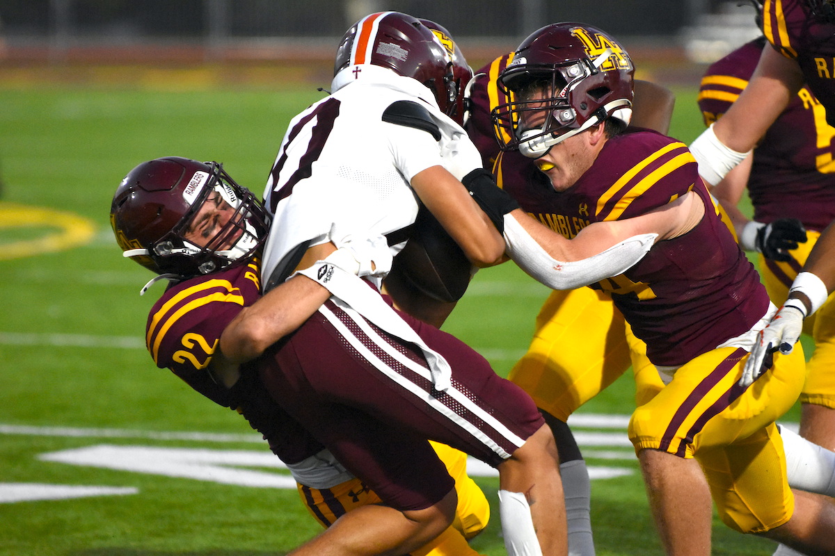 MacPherson knocked down CJ Gray’s end zone pass intended for Jimmy Maxson III to seal the Ramblers’ 28-21 victory in a Chicago Catholic League clash under the lights at Hoerster Field.