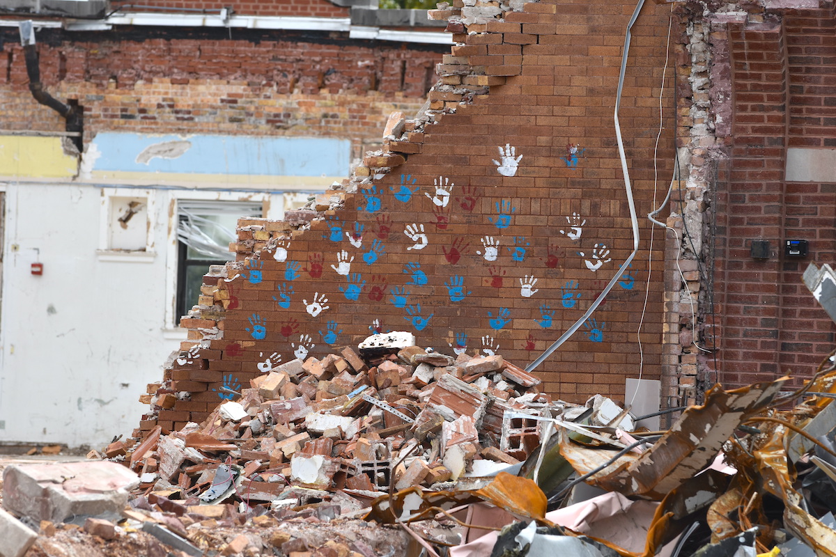 Most of the Lincoln School interior is down but the exterior still stands as of Sept. 23.