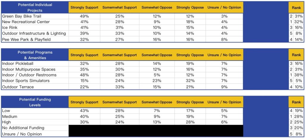 The park district’s push for the additional funding is partially informed by community feedback. In surveys about local recreation, respondents showed significant support for a rerouted Green Bay Trail (74%) and a new rec center (69%). Additionally, 72% of participants said they would support increased funding levels with 28% of that total preferring the “medium” level of funding — the level chosen by the district for the referendum — out of five options, including no funding and no opinion.