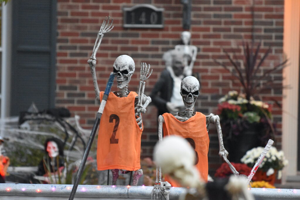 The elaborate display was a natural progression for the hockey-loving family that has created a skeleton scene all three Halloweens they have lived in Kenilworth.