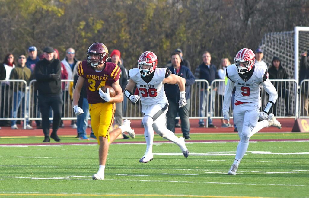 The Ramblers advanced by coming on strong in the second half to topple Maine South 35-14 at Hoerster Field on Saturday, Nov. 16, the afternoon after top-ranked Lincoln-Way East overwhelmed Stevenson 45-0 in another quarterfinal matchup.