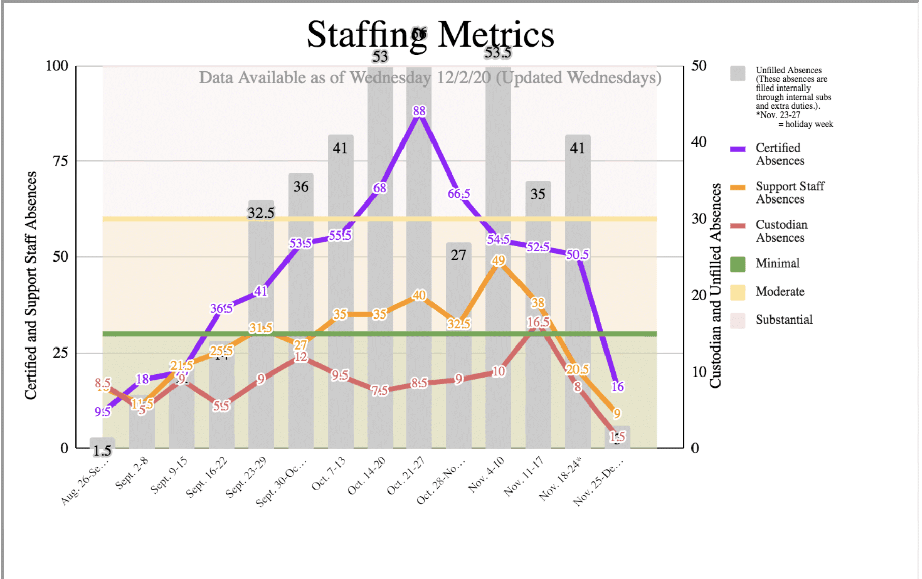 Cremascoli said the district is currently looking at 15 staff members who will need daily substitute coverage the week of Dec. 14. She added a belief that, as of Monday, the district could staff next week.
