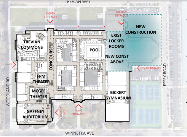 One of the central areas the facilities plan targets is Gates Gym, which was built in 1928 on the east side of the Winnetka campus. In addition to the gym, officials are zeroing in on improvements to the ancillary areas.