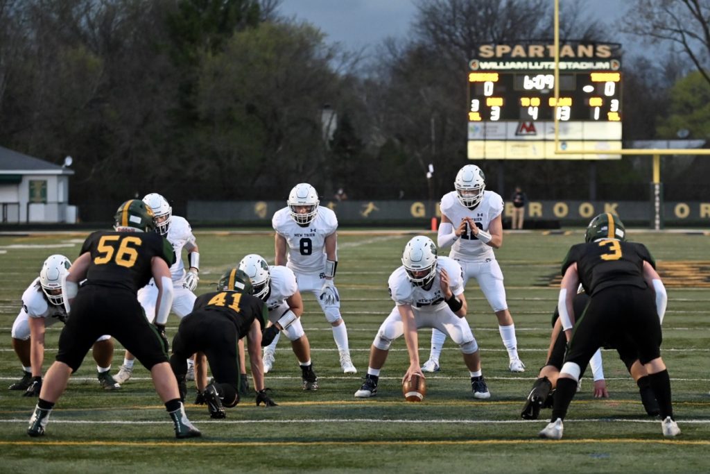 The Spartans put their first score on the board right before the end of the first half when senior quarterback Avery Burow fired a 9-yard touchdown pass. New Trier entered the half with a 7-6 lead after North missed the point-after attempt.