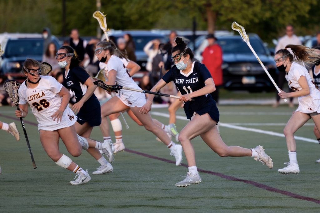 The Loyola Academy girls lacrosse team remained unbeaten with a come-from-behind victory over neighbor New Trier High School on Thursday, May 13, in Glenview.