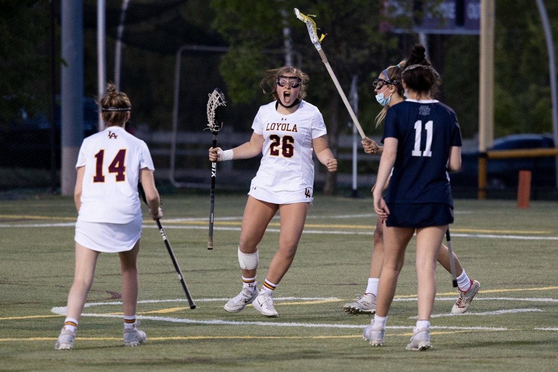 Ellie Lazzaretto, Loyola’s senior captain, led the way by scoring five goals for the Ramblers. Junior Catherine Holcomb also helped pace the Ramblers with a big night, finding the net three times and dishing out three assists.