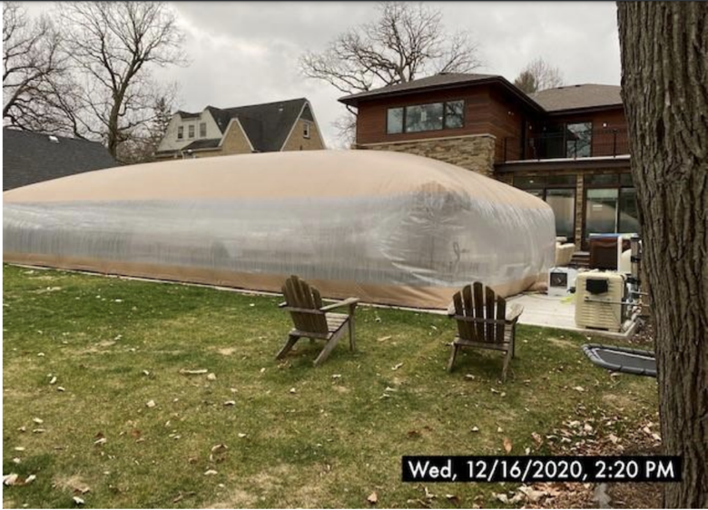 In late 2020, the family installed a temporary, inflatable dome over its in-ground swimming pool in the backyard of their home in the 100 block of Winnetka’s Fuller Lane.