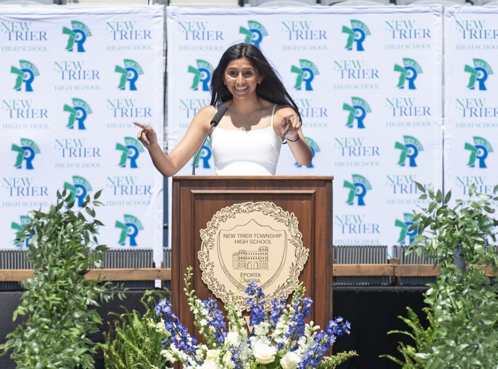 New Trier student Zara Anwar gave the senior commencement address, challenging her peers to give the “New Trier treatment” to those they meet from here on out by “recognizing every single person that goes out of their way to make you smile.”