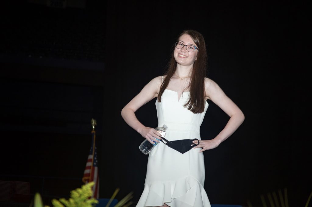 Isabella M. Lombardo poses for a photo after offering the commencement address.