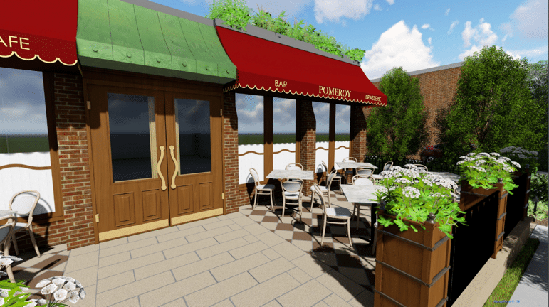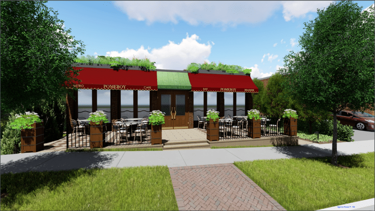 “Pomeroy is a classic bistro serving traditional favorites in a casual and rustic environment,” O’Donnell says in an application submitted to the village. “We will be creating a neighborhood destination. (Our) exterior will reflect an approachable open design including a revolving door, operable windows and sidewalk cafe.”