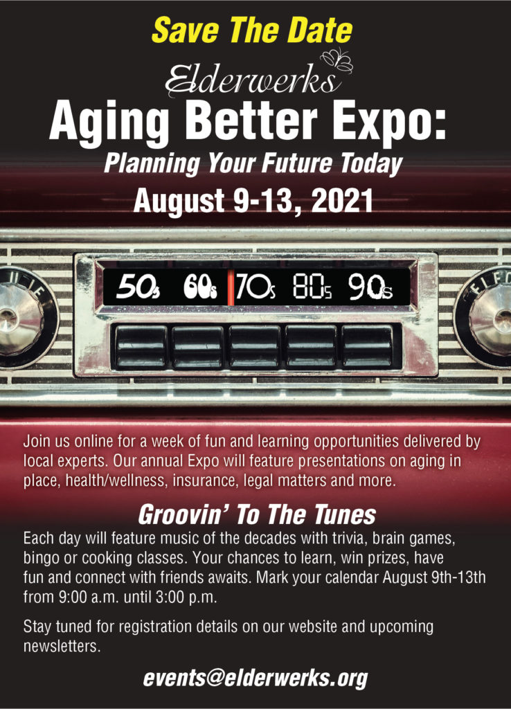 Elderwerks, a Palatine-based nonprofit, is offering Aging Better Expo, a free, five-day interactive and virtual experience from 9 a.m.-3 p.m. Aug. 9-13, when attendees will learn in a fun, engaging live-streamed expo that includes expert education and tips on aging topics.