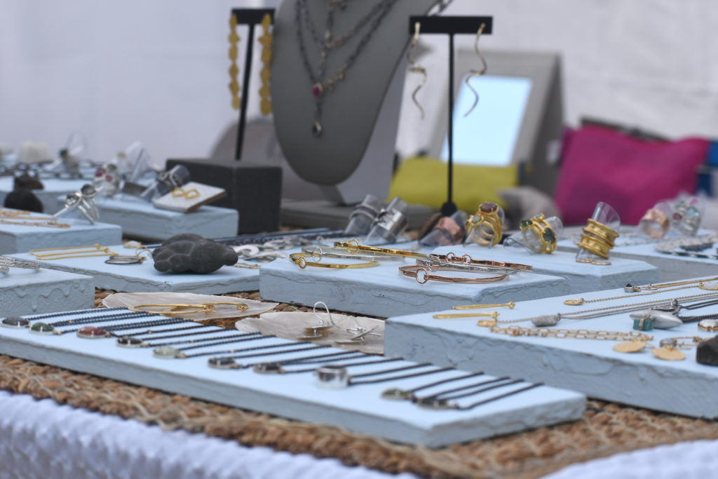 Ladies lingered in jewelry booths, trying on and selecting items. Gentlemen joined each other in testing the strength of handmade furniture and flagging down friends and family across the street. Children cooed at the large cone of shaved-ice served at the Hometown Hut. Babies babbled in strollers, and artists agonized over where to place each piece of work in their displays.