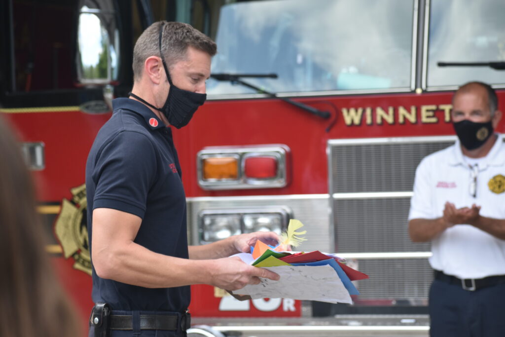 But to commemorate the 20th anniversary of the terrorist attack, the local students walked to the Winnetka firehouse and police station to present their local heroes with handmade cards and a united “Thank you.”