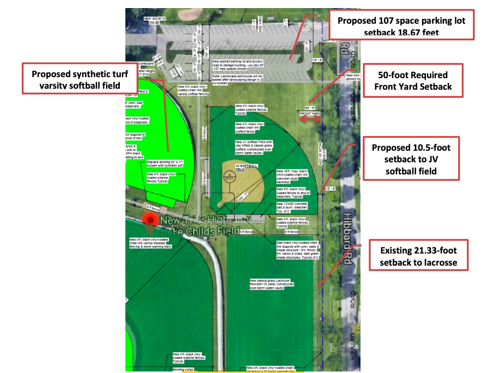 In 2019, New Trier and the Village of Winnetka cosigned an intergovernmental agreement to allow the Village to install storage for 14.2 acre feet, or 4.63 million gallons, of stormwater, under the school-owned land and allow the district to finally pursue $5.3 million in facility improvements that include an additional softball field, modern backstops, improved parking and walking areas, and a new locker room and restroom structure.