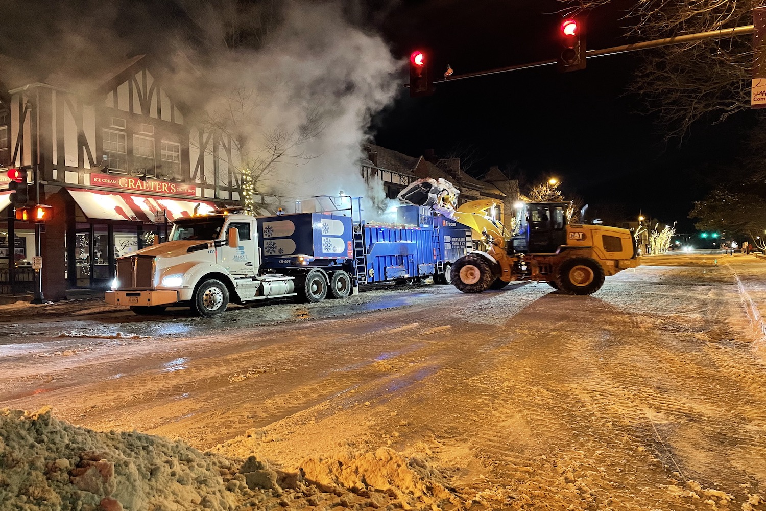 In 2021, McLean and company investigated alternatives to the process and came across snow melters, and the Village opened a bidding process in November for a one-event trial run with an industrial snow melter.