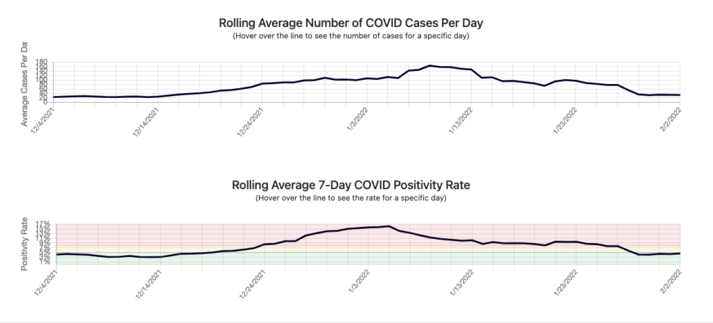 In the county, the average positivity rate was 7.1 percent on Jan. 31. It was 7.4 percent when the mitigations were put in place on Jan. 3.