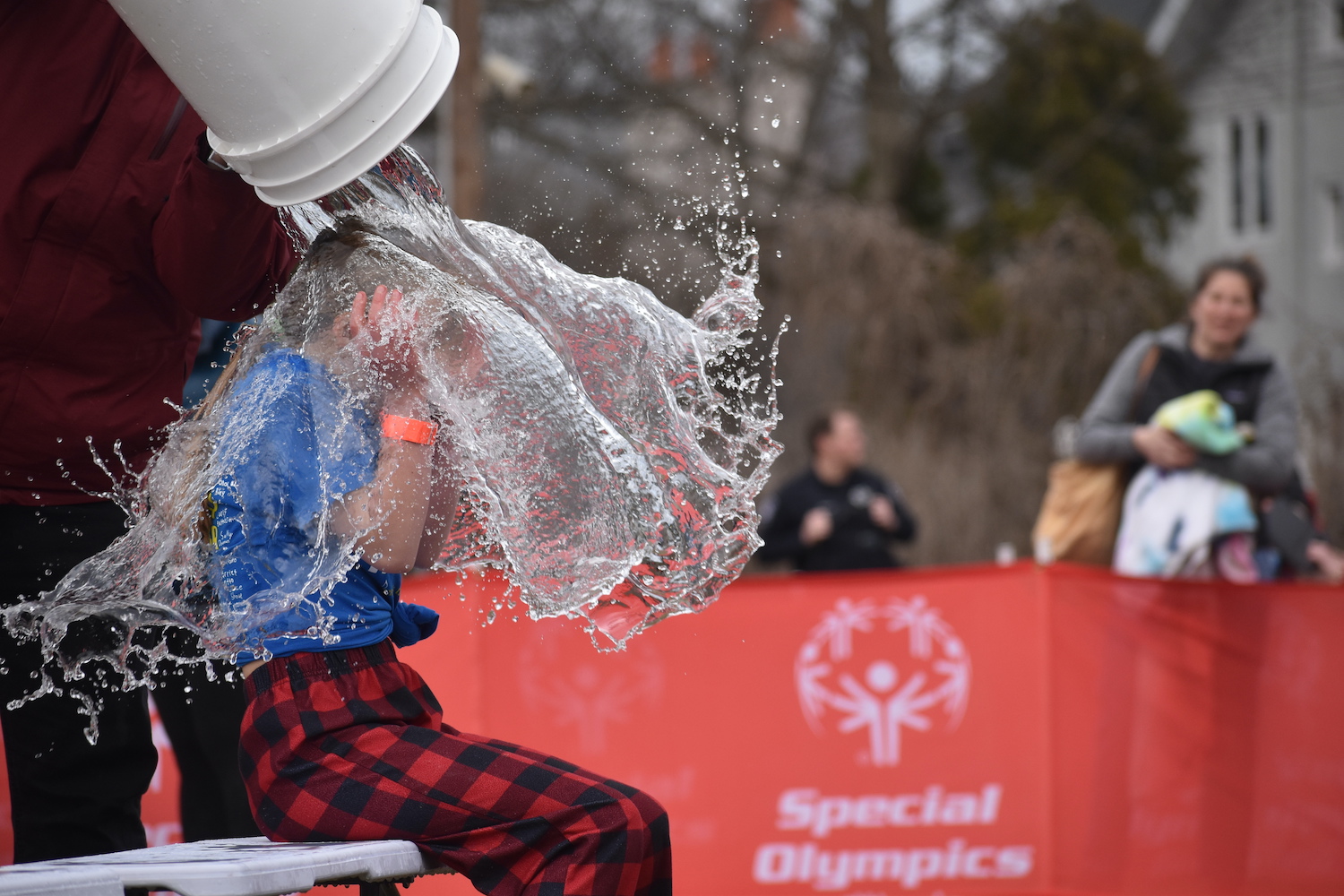 Amid 35-degree temperatures, Heffner was sporting shorts and said that his strategy was to already be cold by the time he was dunked as part of the school’s second Polar Plunge fundraiser, sponsored by the Joseph Sears School Parents Volunteer Association.