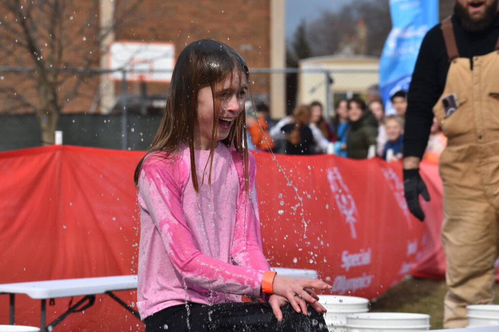 The first to face the bucket of water was fifth-grader Piper Nelson, who raised a school-best $3,815. Nelson has a twin brother with special needs and he loves the water, she said.