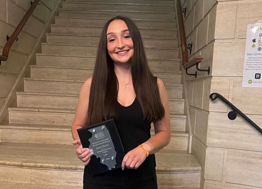 Each year, the Serve Illinois Commission invites recipients of the Governor’s Volunteer Service Award to celebrate their achievements at a ceremony and banquet in Springfield. As Barnes was unable to attend this year’s festivities due to her end-of-year exams, the commission brought the celebration to her, asking Rotering and the Highland Park City Council to present the award on their behalf.
