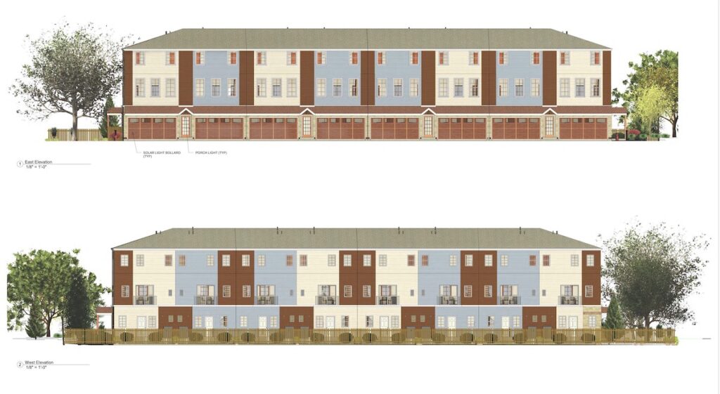 Each unit is 1,475 square feet with three bedrooms, two full bathrooms and a half bathroom. According to the agenda packet, “All eight affordable townhomes will be sold, four of those will be sold to households earning less than 80% (area median income), and the other four will be sold to households earning less than 120% AMI.”