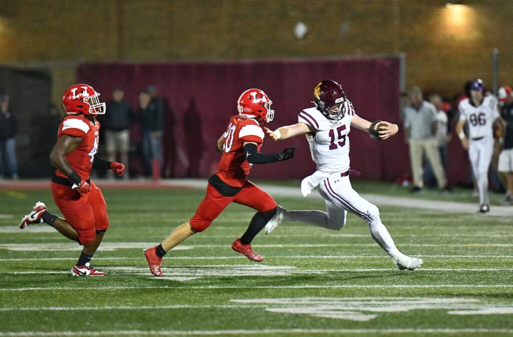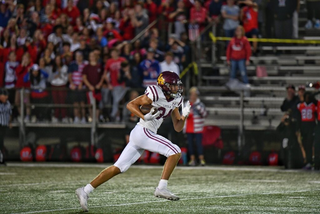 “It was different,” Fitzgerald said, recapping the Ramblers’ third straight victory for their new head coach. “In our previous two games (a 45-7 conquest at Catholic Central in Grand Rapids and a 27-6 triumph at Naperville North) we scored on our first possession. (This time) we struggled up front at first but then the offensive line turned it on. It was like flicking a switch.”