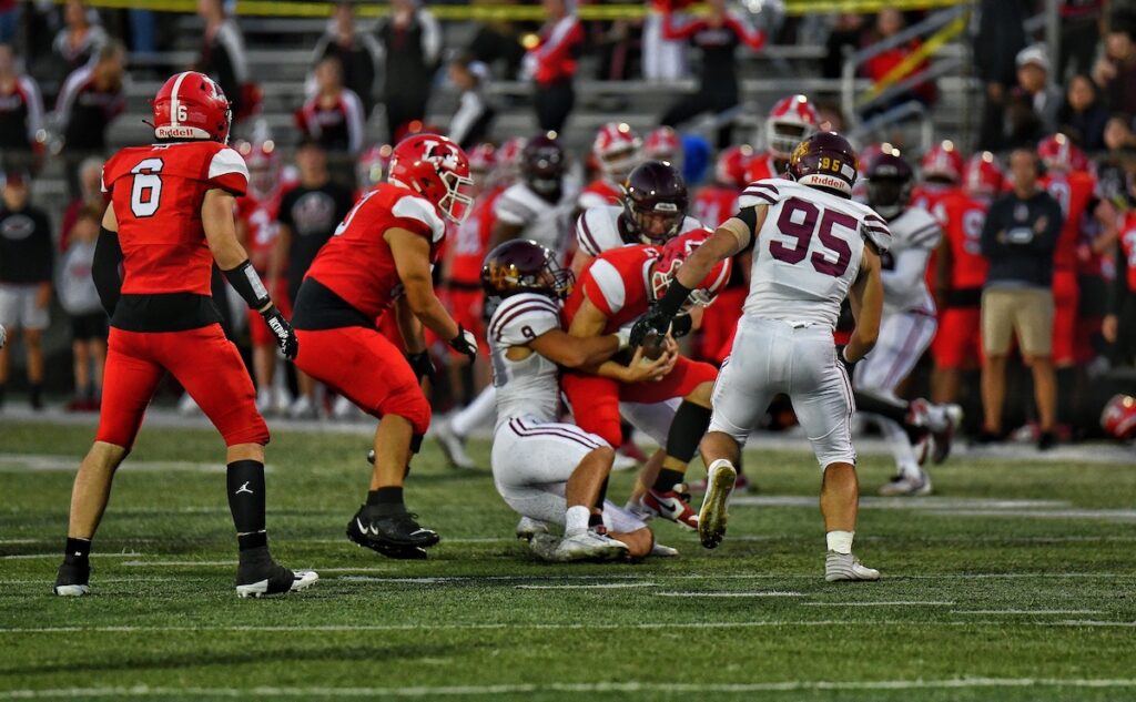 The TD by Miller was set up by outside linebacker Quinn Herbert’s interception and 16-yard return punctuated by a RedHawks’ penalty after the play that advanced the ball to the 18-yard line. Then, Milller’s runs of 2 and 14 yards prefaced his touchdown carry.